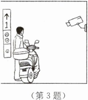 3(2024·常州中考)《重庆市消防条例》规定:2024年7月1日起,禁止携带电动自行车或其电池进入电梯轿厢。一旦有人违规操作,会被电梯内的摄像头拍摄成像并智能识别,电梯将停止运行并发出声、光警报。如图所示,某次警报时,摄像头凸透镜成像的像距为10.1 mm,则凸透镜的焦距可能为( )。
