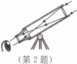 2 教材P78图3-31·拓展 (2023·陕西咸阳秦都区期中)“超级月亮”比正常时的月亮要大百分之二十,亮度也有所增加,某天文爱好者为了研究这一现象,于是架设一台开普勒望远镜做进一步观察.关于该望远镜,下列说法正确的是( ).