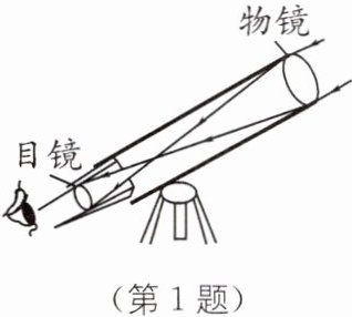 1 如图所示是由两组凸透镜组成的望远镜,使远处的物体在焦点附近成实像的物镜相当于______(填“照相机”或“投影机”)的镜头;物镜的直径比我们眼睛的瞳孔大很多,主要目的是______;历史上第一位自制天文望远镜观察天体的是意大利物理学家______.