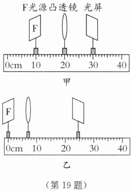 (2)小华将“F”光源、凸透镜和光屏按照如图甲所示位置放置时,光屏上能成清晰的像,所成的像是______立的.凸透镜的焦距为______cm.