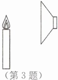 3 教材P15读一读·改编 如图所示,将一支点燃的蜡烛放在扬声器的前方,当扬声器发出较强的声音时,可以看到烛焰随着音乐的节奏晃动,扬声器的纸盆由于______发出声音,声音通过______传到烛焰处,烛焰的晃动说明声音具有______。