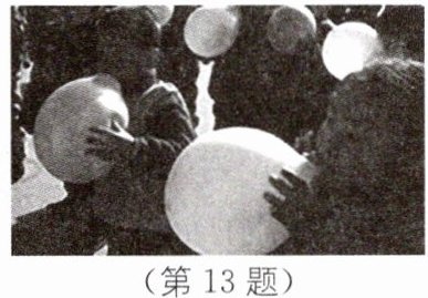 13 某校运动会上增加了一项有趣的比赛——吹气球。如图所示,气球越来越大,突然,“啪”的一声破裂。声音以______的形式向四周传播,四周同学听到的爆破声音是通过______传到耳中的。