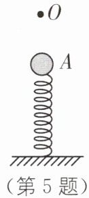 5. 如图所示,轻质弹簧竖直放置,下端固定于地面,上端位于O点时弹簧恰好不发生形变.现将一个小球放在弹簧上端,再用力向下把小球压至图中A点后由静止释放,小球将竖直向上运动并脱离弹簧,不计空气阻力,则小球( ).