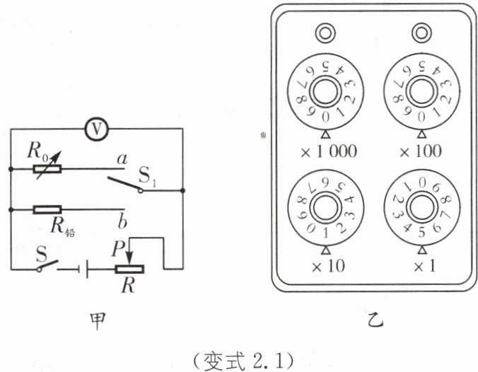 (1)①正确连好电路,闭合开关S,将开关$S_{1}$先拨至______处、移动滑动变阻器滑片P,使电压表示数为2 V.