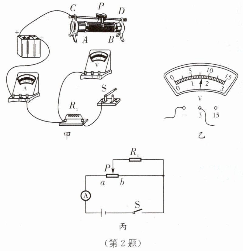 (3)重新正确连接电路后,闭合开关S,当滑片P移动到某一个位置时,电流表的示数为0.16 A,电压表的示数如图乙所示,则待测电阻$R_{x}= $______.