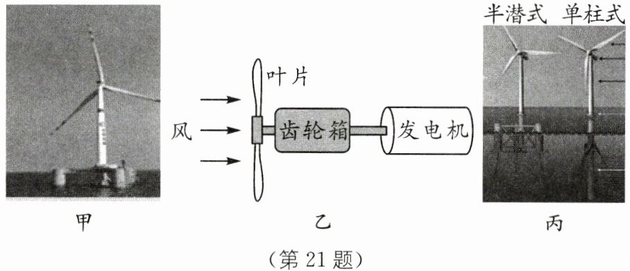 (3)海浮式风电平台基础设计方式除半潜式外还有单柱式(图丙).两种方式相比较,你认为“半潜式”的一个明显优点是______.
