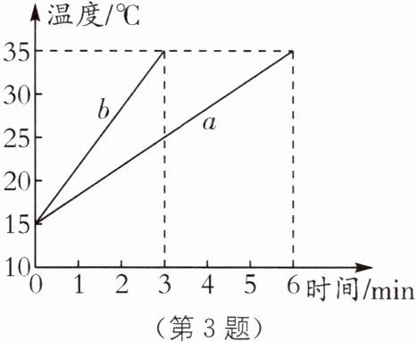 C.0~3 min 内 a 液体吸收的热量少