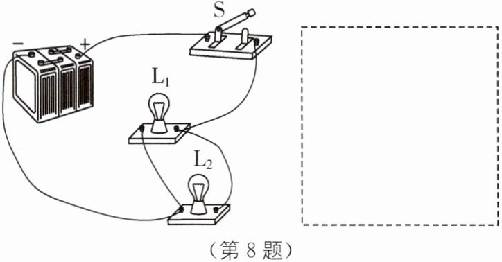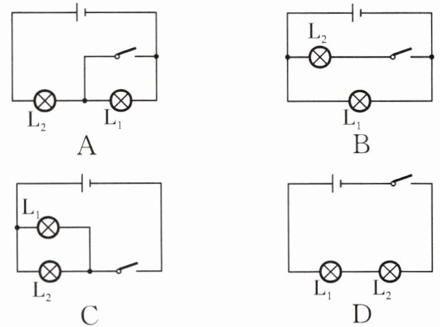 D.电源正极依次连接开关、灯泡$L_1、$灯泡$L_2$后回到电源负极