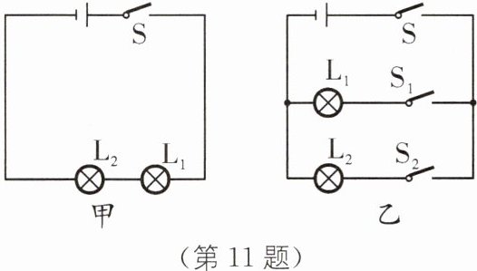 11. 提分优练 学习了串、并联电路后,同学们想探究串、并联电路的工作特点,小华按照如图甲、乙所示的电路分别用导线把各元件正确连接起来.
