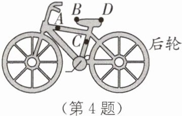 4. 停放自行车时,若要从如图所示的四点中选择一点施加竖直向上的力,将后轮略微提起,则其中最省力的点是( ).