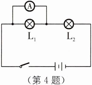 4. 如图所示,粗心的小强把电流表并联接在了$L_1$的两端. 此时如果闭合开关,一定会发生( ).