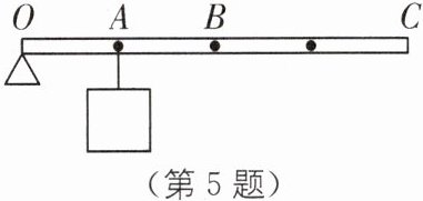 5 如图所示,一根均匀的细木棒 OC,OC= 4OA,B 是 OC 的中点,在 C 点施力将挂在 A 点的重为 180 N 的物体匀速提升 10 cm,木棒的机械效率为 90%,则提升该物体做的有用功是______J,木棒的重为______N.(不计摩擦)