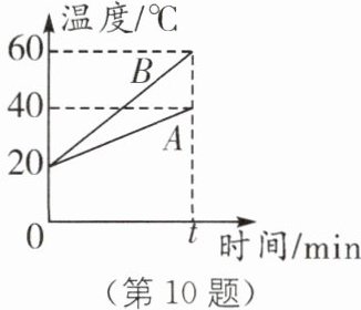 10 用相同的电加热器分别对质量相等的A和B两种液体加热(不计热量损失),如图所示是A和B的温度随加热时间变化的图像,下列说法正确的是( ).