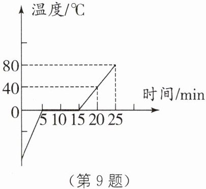 9 如图所示是“探究晶体熔化时温度随加热时间变化”的图像(相同时间吸收的热量相同). 分析图像可知: