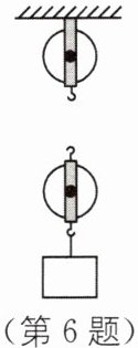 右 6 100 [解析]木箱向左运动,滑动摩擦力的方向与木箱相对于地面滑动方向相反,为水平向右.由图可知,$ n=2 $,若木箱匀速运动了3m,则拉力F移动的距离为$ s=2s_{物}=2× 3\ m=6\ m $;木箱在水平地面上做匀速直线运动,拉力$ F=\frac{1}{2}f=\frac{1}{2}× 200\ N=100\ N $.