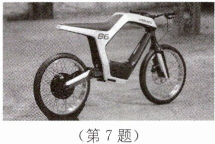 7 (2024·宿迁中考)氢能是新能源利用的新潮流,加快氢能产业发展成为实现“碳达峰、碳中和”的重要举措.如图所示是市场上的某品牌氢能自行车,一次性充满$0.02\ kg$氢气,$2\ h能匀速骑行50\ km$,氢能自行车与骑行者总质量为$84\ kg$,骑行时受到的阻力为总重的$0.05$倍,氢气热值为$1.4×10^{8}\ J/kg$.氢气完全燃烧产生的热量是______J,氢气的利用效率是______.($g取10\ N/kg$)