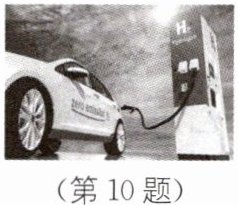 10 (2024·淮安中考)2024年4月,两辆氢能源汽车实现了从北京到上海1500公里长距离运输测试,这是中国氢能源车辆首次大范围、长距离、跨区域的实际运输测试.如图所示是某款氢能源汽车,该款氢能源汽车在公路上行驶30 km,用时0.4 h,受到的牵引力为$ 1.4×10^3 N $,消耗氢气0.8 kg,则此过程中汽车行驶的平均速度为______km/h,氢气燃烧放出的热量为______J,利用氢能的效率为______.($ q_{氢气}= 1.4×10^8 J/kg $)