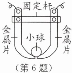 6 如图所示是电扇中的一个自动保护装置,当电扇不慎被碰发生倾斜或倾倒时,小球就会滚向一侧使电路断开,起到保护电扇的作用,由此判断,这个保护装置在电扇电路中的作用相当于( ).