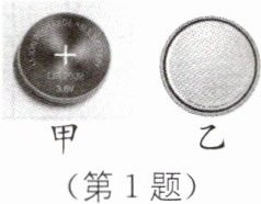 C [解析]由题图可知,图甲上标志“+”表示这一面是纽扣电池的正极,则图乙是其负极,故A错误;该电池可以把化学能转化为电能,用电器才是把电能转化为其他形式能的装置,故B错误;从电源类型上看,该电池为直流电源,故C正确;纽扣电池的正负极不能用导线直接连接起来,这样会造成电源短路,故D错误。故选C。