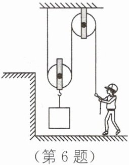 6. 提分优练 某建筑工人的重力为800N,双脚与地面的接触面积是$500cm^2,$该工人通过如图所示的滑轮组