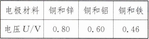 (2)插入深度 两电极间距离 水果电池的电压与电极的材料有关