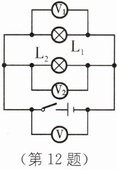 12 (2024·陕西榆林定边县期末)如图所示,灯泡$L_2$比$L_1$亮,电压表V示数为4.5V,下列说法正确的是( ).