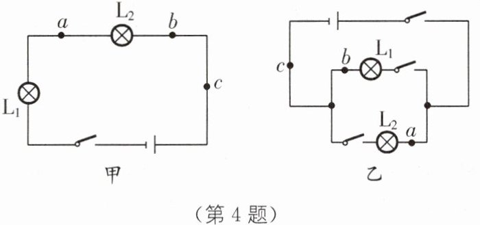 4 小明根据如图所示的甲、乙两电路图“探究串联电路和并联电路的电流关系”时,闭合开关后,得到: