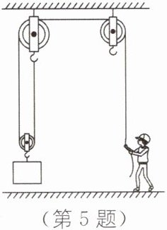 5. 如图所示,工人用滑轮组将重为200 N的货物10 s内匀速提升6 m,拉力为150 N.忽略绳重及摩擦,下列说法正确的是( ).