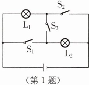 D [解析]要使灯泡L₁和L₂组成串联电路,应将灯L₁和L₂首尾顺次连接到电源两端,则由图可知闭合S₃,断开S₁、S₂,灯泡L₁和L₂组成串联电路,故D符合题意;若闭合开关S₁、S₂和S₃,电流不经过用电器直接从电源的正极流入电源负极,从而形成电源短路,故A不符合题意;若只闭合开关S₁和S₂,灯泡L₁和L₂组成并联电路,故B不符合题意;若只闭合开关S₂和S₃,灯L₂被短路,电流不经过灯L₂,只有灯L₁连入电路,故C不符合题意.