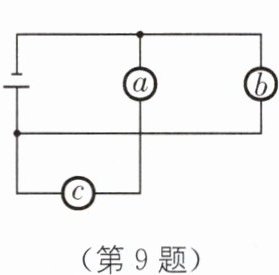 9 如图所示电路,a、b、c中各有一个是电流表、电压表和灯泡,灯泡正常发光,下列判断中正确的是( ).