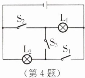 4 如图所示电路中,只闭合$S_{1}$、$S_{2}$时,灯$L_{1}$、$L_{2}$是______的;只闭合$S_{3}$时,灯$L_{1}$、$L_{2}$是______的.(填“串联”或“并联”)