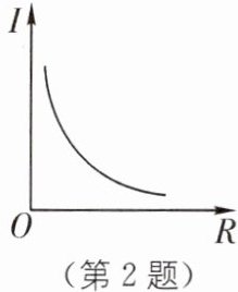 2 某同学在探究电流跟电压、电阻的关系时,根据收集到的数据画出了如图所示的I-R图像,下列结论与图像相符的是( ).