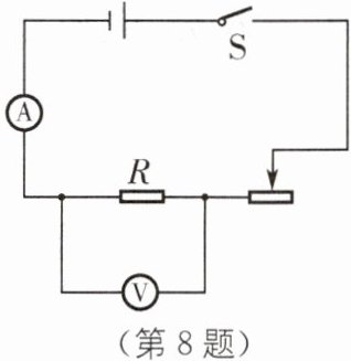 8 如图所示,电源电压为 9 V,定值电阻 R 为 10 Ω,滑动变阻器的最大阻值为 50 Ω,电流表量程是 0~0.6 A,电压表量程是 0~3 V,为了保证电路中所有元件安全,滑动变阻器的阻值变化范围只能为______.