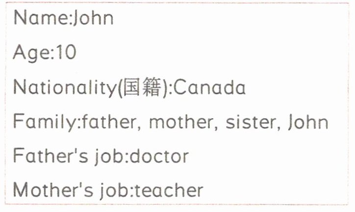 (学科综合)二、下面是John的信息卡。阅读信息卡,完成下列各题。