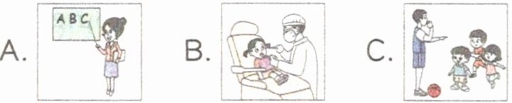 一、“职业风采”展览区张贴了一些人们工作时的照片。给句子选择对应的职业照片。