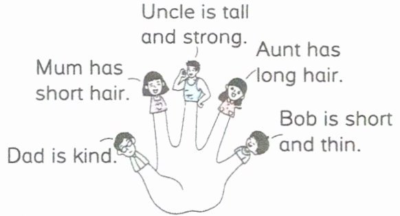 下面是 Bob 一家的手指画,根据图画,判断下列句子正(T)误(F)。