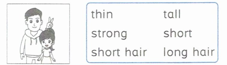 Lily 在朋友圈上传了一张和爸爸的合照。根据照片提示,选词填空。