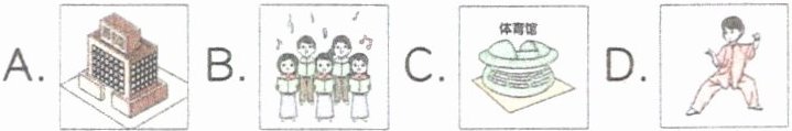 (生活情境)二、校宣传部向大家征集优秀照片,下面是 Chenchen 准备的照片。给句子选择对应的照片。