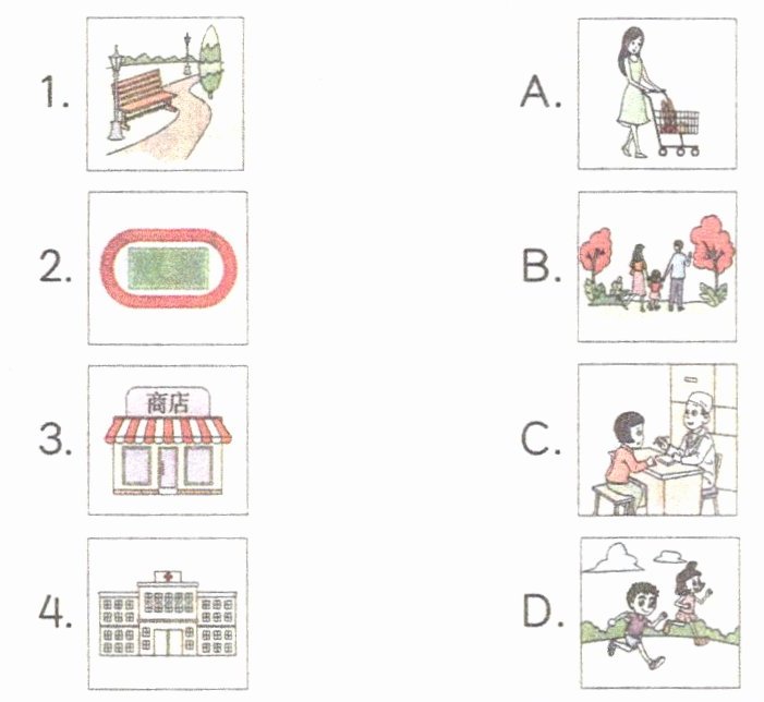 (一)读句子,将下列地点和活动连线。