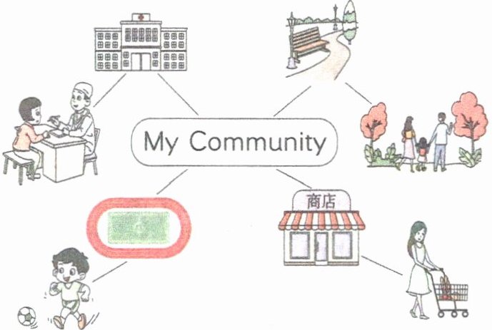 (动手能力)三、下面是Chenchen设计的梦想中的社区。根据设计图,补全句子,给大家介绍一下吧。