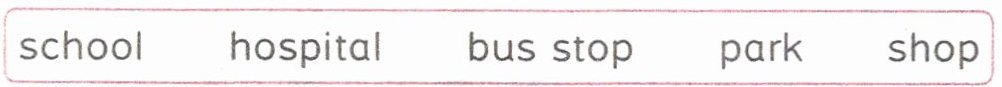 There is a shop.People often go shopping there.There is a hospital.People can see a doctor there.(答案不唯一)