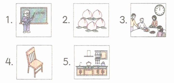 三、下面是 Youyou 的课堂笔记。看图片,写单词,完成句子。