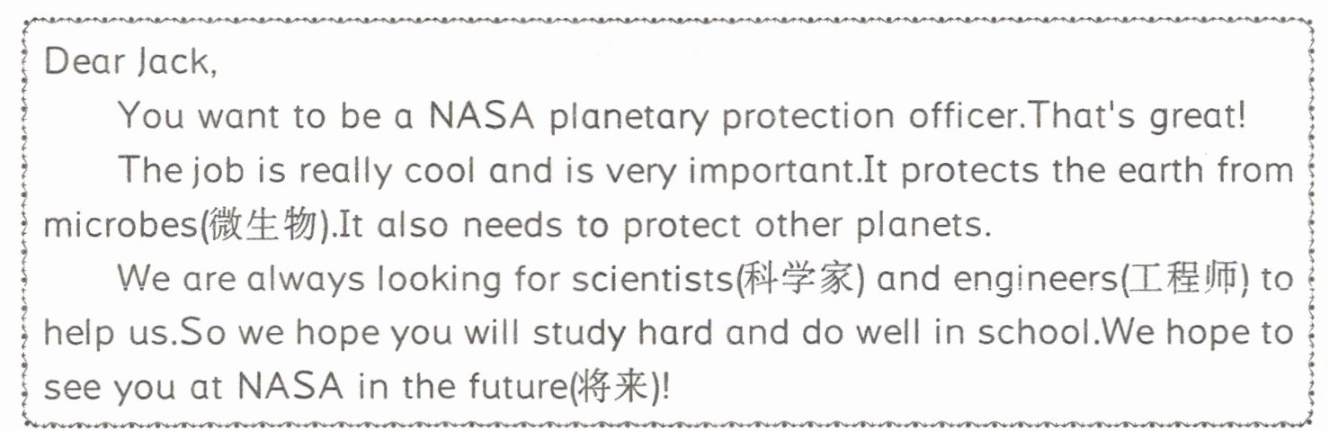 )5.Jack wants to be a planetary protection officer for NASA.