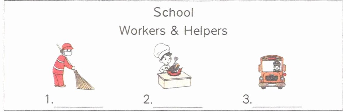 F.He cooks for children. G.She cleans our school.