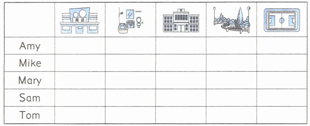 1.afternoon 2.playground 3.hospital 4.park 5.shop