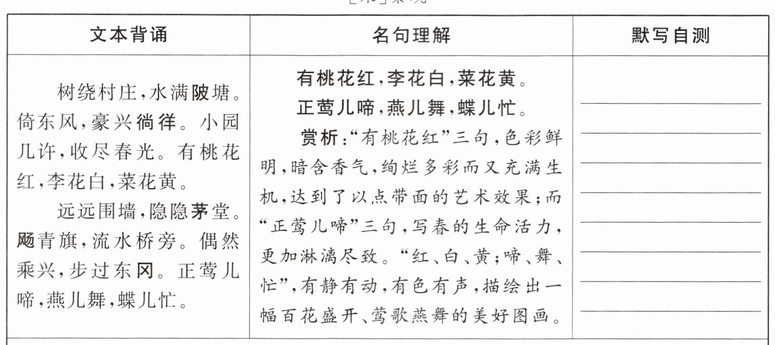 1.《行香子》一词中写景色彩简单鲜明又写出农家本色的句子是: