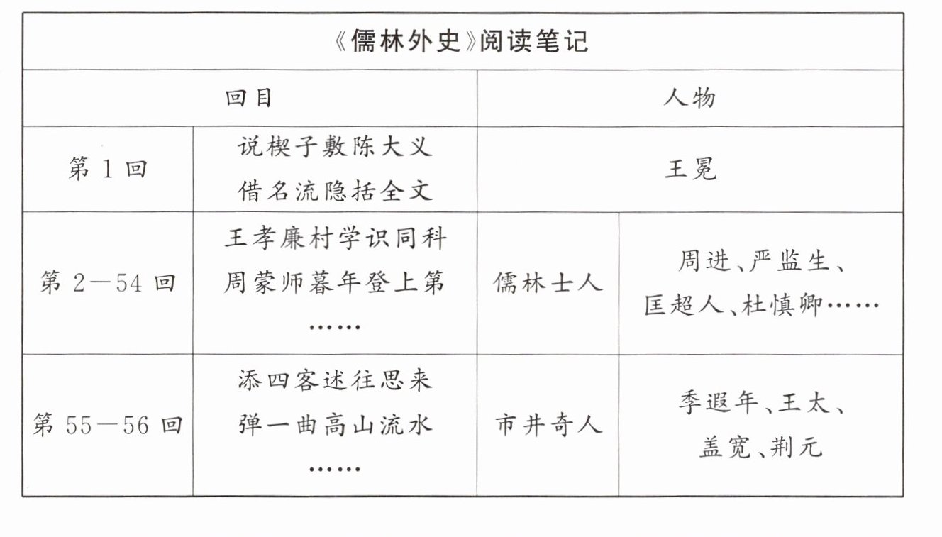 (1)小说主体部分通过展现功名利禄对周进、匡超人等读书人灵魂的毒害,批判了荒谬的科举制度。在他们之后,作者以四位各怀才艺、淡泊名利的市井奇人(寺院里安身的季遐年写得一笔好字,卖火纸筒的王太下得一手好棋,开小茶馆的盖宽画得一幅好画,做裁缝的荆元弹得一手好琴)作为压轴人物,与儒林形成鲜明对比,寄托了作者对理想社会的追求。这组人物与楔子中品行高洁的王冕呼应,更加凸显了作者的这一追求。