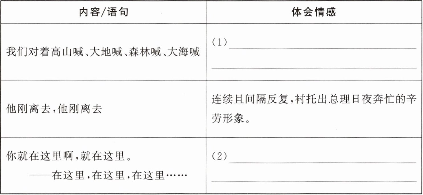(2)连续反复,强调人民找到总理后的欣喜之情。