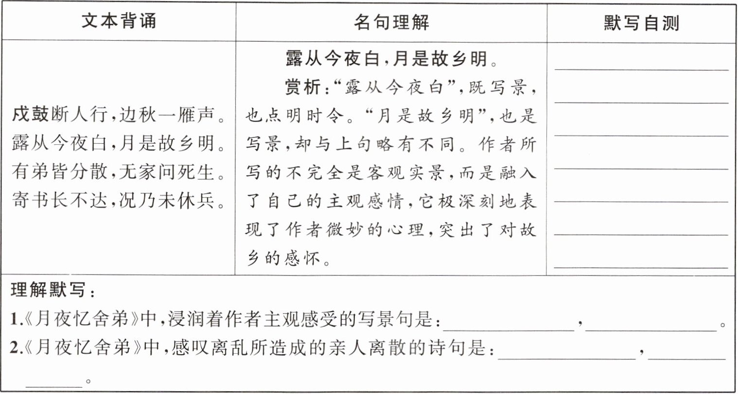 1.露从今夜白 月是故乡明 2.有弟皆分散 无家问死生