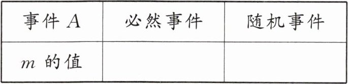 (1)先从袋子中取出$m(m>1)$个红球,再从袋子中随机摸出 1 个球,将“摸出黑球”记为事件$A$.请完成下列表格: